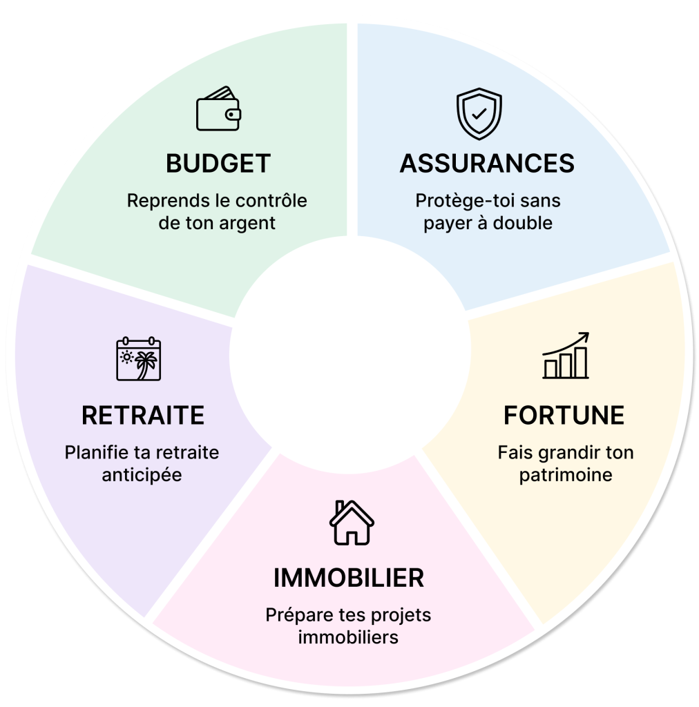Je t’accompagne à transformer ton argent en décisions intelligentes, adaptées à ta situation personnelle et à la réalité suisse.